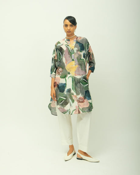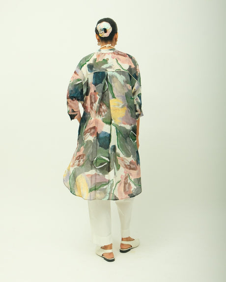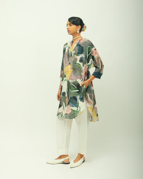 Anti fit, front drawstring back elasticated lowers, straight fit Variations in color, texture, and weave are inherent due to the hand-made nature of the garment. Print placements will vary—single Piece. Garment Length - 39"