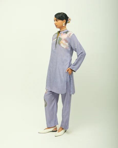Anti fit, mandarin collar, half packet, full sleeves, perfect for casual outings, crafted from lightweight textiles, hand-painted abstract expressionist digitally transferred print, side pockets. Print placement may vary- Single piece. Garment Length - 34"